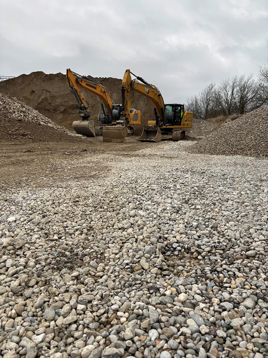 Neben den Erdbauarbeiten verkaufen wir hochwertigen Schotter, Schotterrasen, Naturhumus, Zierkies in allen Farben und Körnungen sowie Steine und Findlinge.